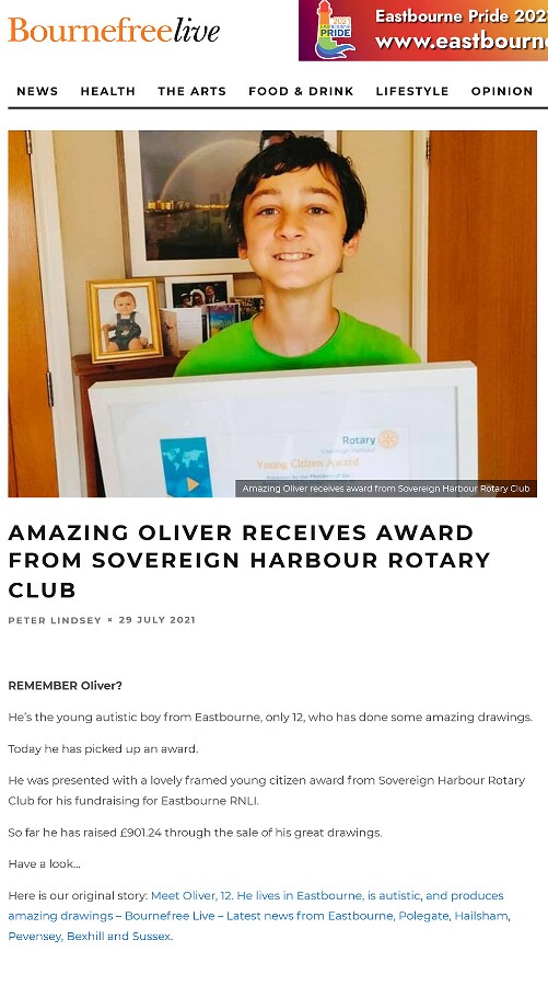 Bournfree Magazine July 2021 - Oliver (age 12) receives Young Citizen award.