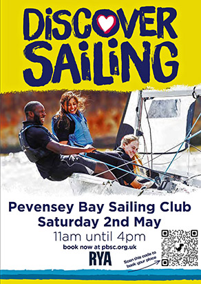 17 April - On Saturday 2nd May Everyone Is Invited To Discover Sailing At Pevensey Bay Sailing Club- Please join us for a free taster sail with an experienced member of the Club. Sailing sessions start at approximately 11.00 and will continue for most of the day. Click for details.... ![]()